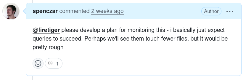 Furthermore, I had expectations that it should improve query performance, but measuring performance improvements with traditional alarms would be a crude and noisy approach. I wanted an agent to help with the process of confirming that the change had its intended effect, too.