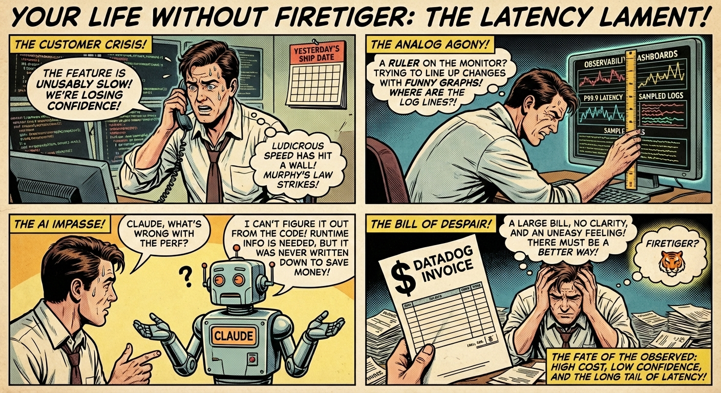 Your most important customer calls: the feature you shipped yesterday is (sometimes) unusably slow. They and their agents are losing confidence in your product.